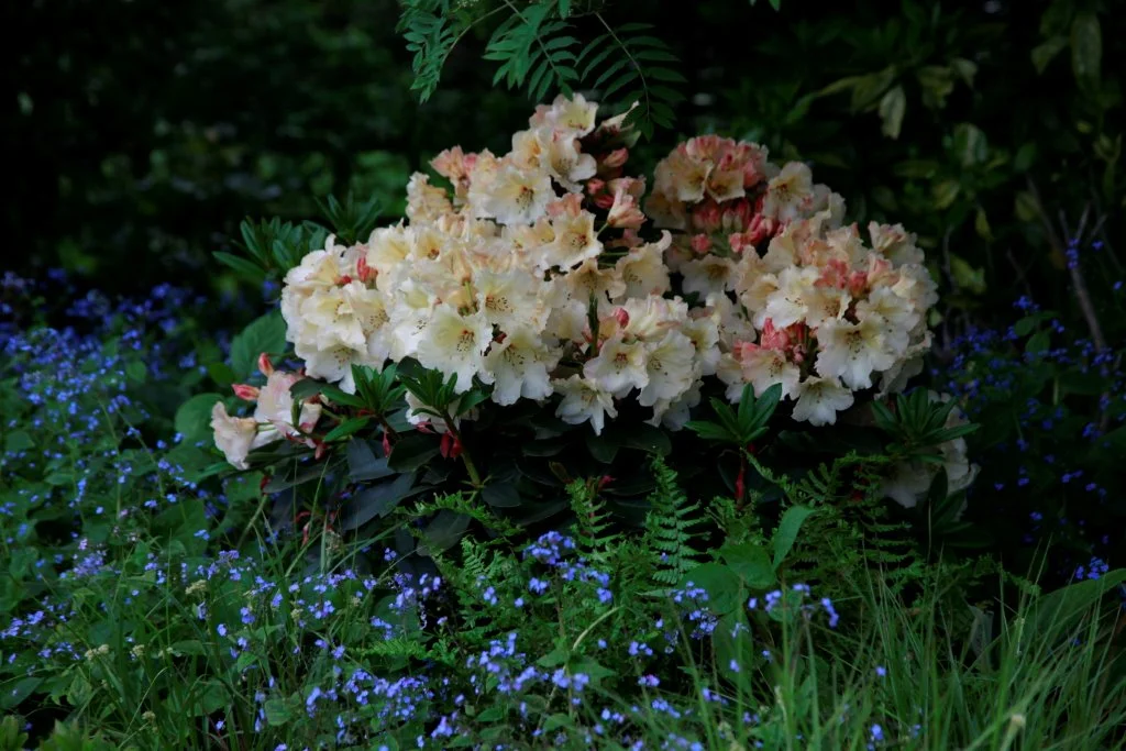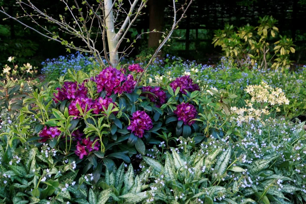 Rhododendrons, azaleas and camellias will grow happily in sun but, if possible, they do enjoy a little shade at some point in the day (ideally in the middle of the day). Filtered sunlight through other plants or partial shade as the sun moves through the day is ideal, as is full shade in front of a fence or on a north facing border. Avoid planting directly under trees but instead plant on the edge of the tree canopy.