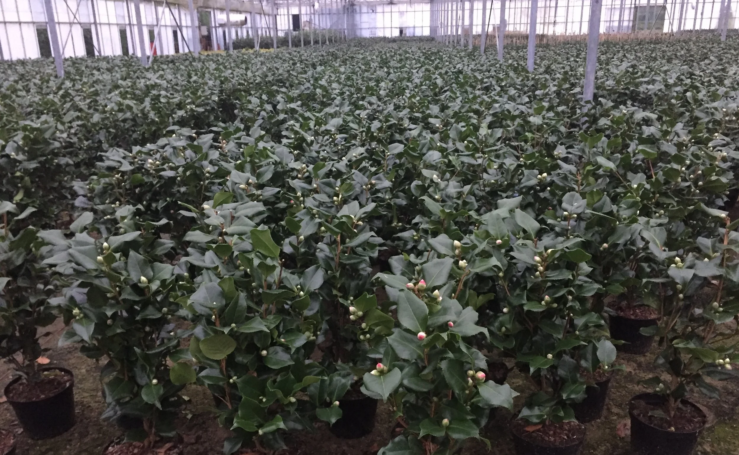 Our Camellias are all lined up in the glasshouse ready to find their way to your garden. This picture shows you 15,000 Camellia "Dr King" all looking lovely and evenly grown and packed with flower buds.