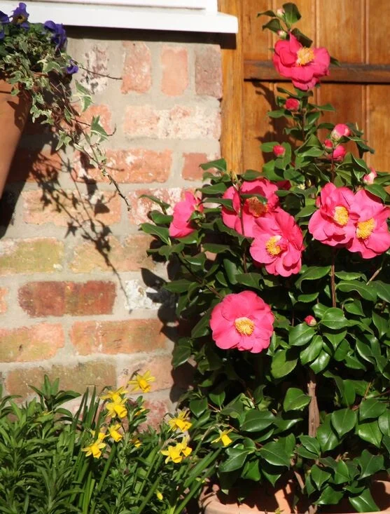 Ask any experienced gardener and they will confirm that Camellias are some of the best plants to give as presents. They look luxurious and exotic and long established gardeners love them but they are easy to grow so new gardeners will find them very rewarding. They grow in pots or in the ground so they suit all sizes of gardens. They love some shade so they work in difficult spots. They keep their handsome foliage all year round, they live for years and years and years and they flower in the early spring - what more could you want?